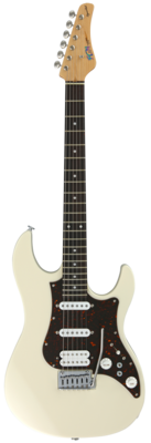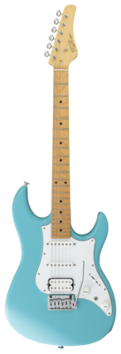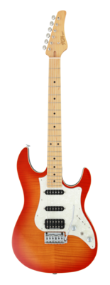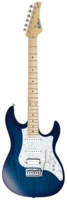 Traditionelle Gitarre mit Erlekorpus, geschraubter Ahornhals und HSS Pickup-Bestückung in J-Standard Qualität.