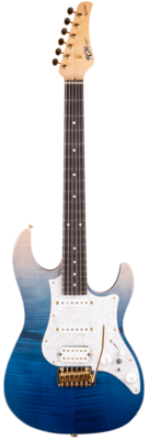 Die zeitgenössische Surf Gitarre mit wunderschön gefalmmter Decke in angesagter Farbkombination.